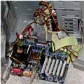 先日の友人マシンを作って羨ましくなり、1年ぶりのマシンのパワーアップを決意(大げさ:笑) CPUをPentium3-1G→Pentium4-2.5Gにしました。もちろん、マザーもメモリも交換。さて購入は簡単だったのですけど・・・組み立ててみると、とんでもない落とし穴が・・・。システムは入るのだが、増設HDDを複数個つなぐとシステムが立ち上がらない。ほぼ徹夜状態でHDDの順序入替えを試すも起動しない条件が一定せず安定起動しない。