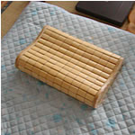 まだまだ暑い日が続きますね〜。さて、ここのところ寝ていて枕が熱く感じ寝返りというか頭を乗せている場所を変える動作を繰り返しているのも寝不足感の原因のひとつかなと思い、解消法としてBAMBOO PILLOW (竹製枕:1800円)を買ってみましたf^^; 見た目は硬そうですが1つ1つの竹の板が綺麗に表面と角を処理されており、弾力のあるワイヤーで繋がれているので感触的にはウレタン並です。頭も熱くならずになかなかGOODなんですけど…やっぱり、枕を変えると慣れるまでは寝苦しいような…(^^)