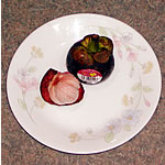 先日、電子機器系サポートのお礼と『マンゴスチン』なるフルーツ(?)を貰った。奥さんと2人で聞き慣れない&見慣れないソレを見て「どうやって食べるんだろう?」と一瞬悩むも、そこはNETで調べるがよろしと合意。調べてみると、なんと原産国タイにいる害虫が国内に入らぬ様にと昨年2003年の4月25日まで輸入禁止だった物だそうな。なんとか有効な消毒方が見つかり解禁になった果物らしい。外皮を割って中身の白っぽい果肉を食すとちょっとヌメッとして酸味と甘みが強く南国の味ぃ〜(^.^)結構美味しいジャン。国内でも栽培にチャレンジしているようですが成長が遅く、土壌と気候も合わないとかで難しいのが現状との事です。