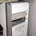 パソコンSHOPから電話が掛かり、修理に出していたDVD-RWドライブがメーカーから戻ってきたとのこと。聞くと…新品交換してくれたのだが修理品は製造終了しているので最新型にしてくれたのこと。おお〜ぉ!GSA4120Bだぁ!DVD+RW DL(デュアルレイヤ)対応の片面2層の8.5G焼けるドライブですぅ\(^_^)/ 早速、受け取りに行って来て、マシンに取り付けてみた。問題なく動作。ん?メーカのHPの説明によるとDVD-RAMドライバは付けてないの付属のソフトで記録しろとな…でも旧ドライブのドライバで動かしてみると問題なくエクスプローラでドラッグ&ドロップで記録できてしまった。なんでドライバ付けなくしたんだろ?