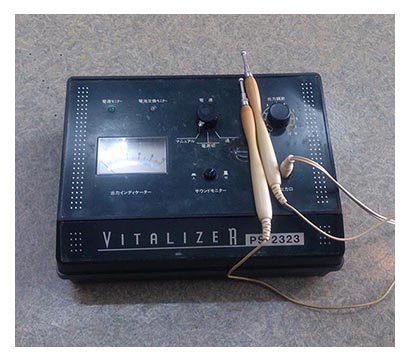 バイタライザーは2本の金属スティックを頭皮に接触させて