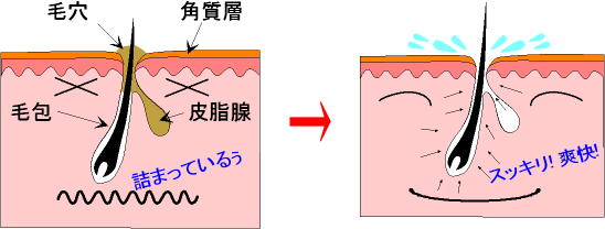 毛穴から外に向かって出す際に毛穴のつまりを掃除する